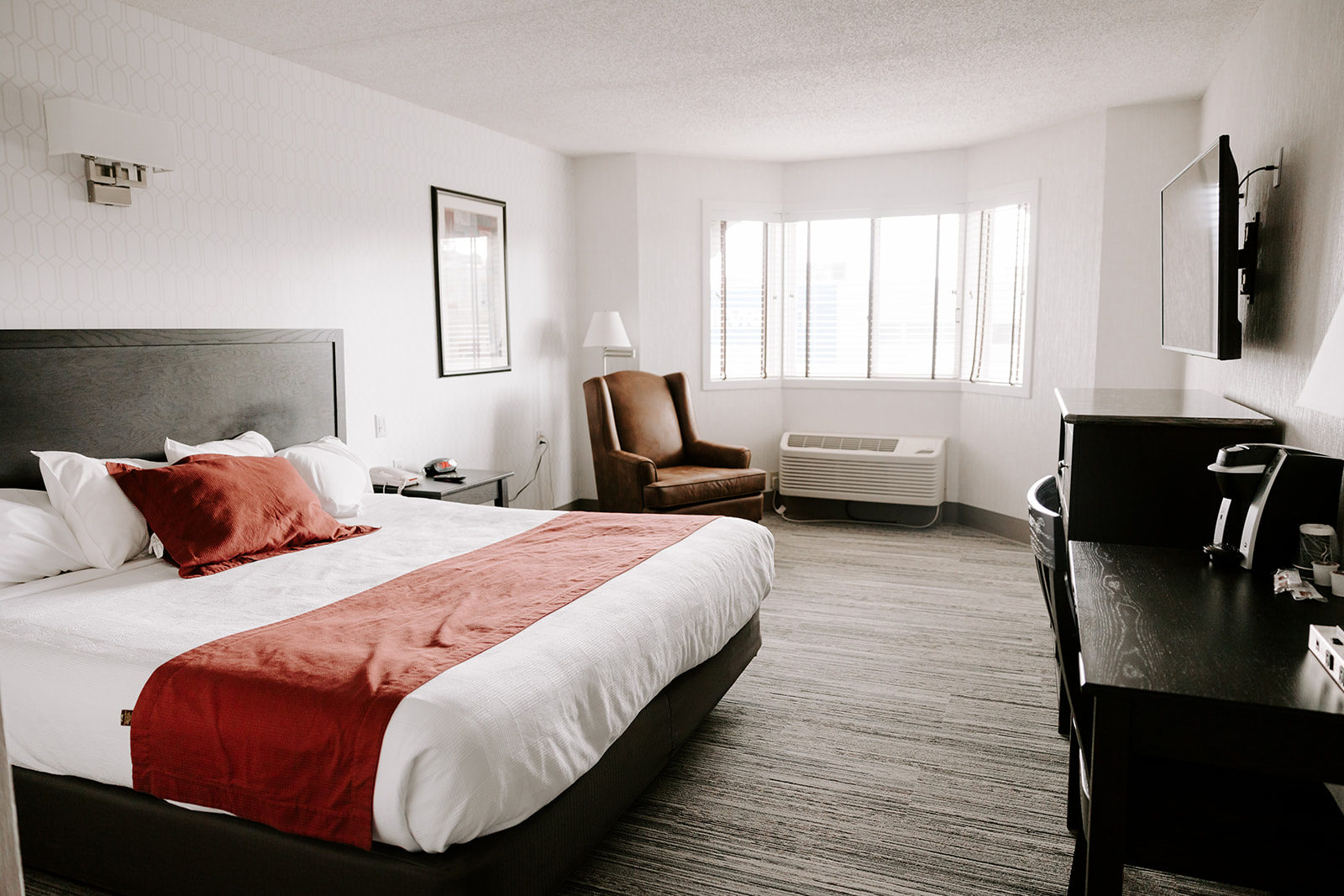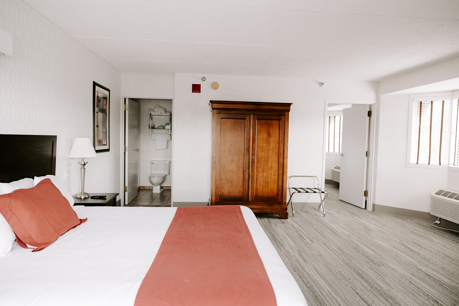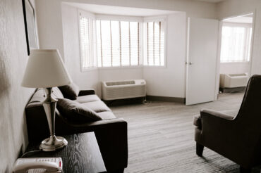 The Presidential Suite is our largest option and includes a living room, workstation, arm chair, sofa, refrigerator, microwave, and a large bedroom with a king sized bed and sitting area. All rooms are modeled with a focus on comfort, privacy, and cleanliness. Rooms overlooking a beautiful three-story Grand Atrium are available to you upon request!
